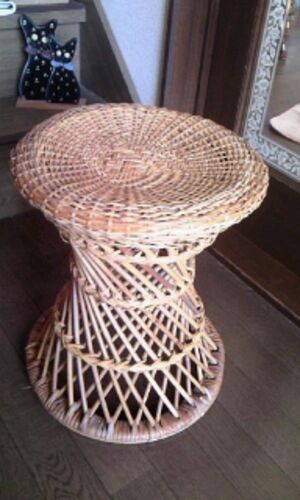 レトロな籐の家具って好きです これ、先日行った教会のバザーでみつけたの 4つあったんだけど1つだけ買ってきました今は階段の下、玄関のところに置いてます